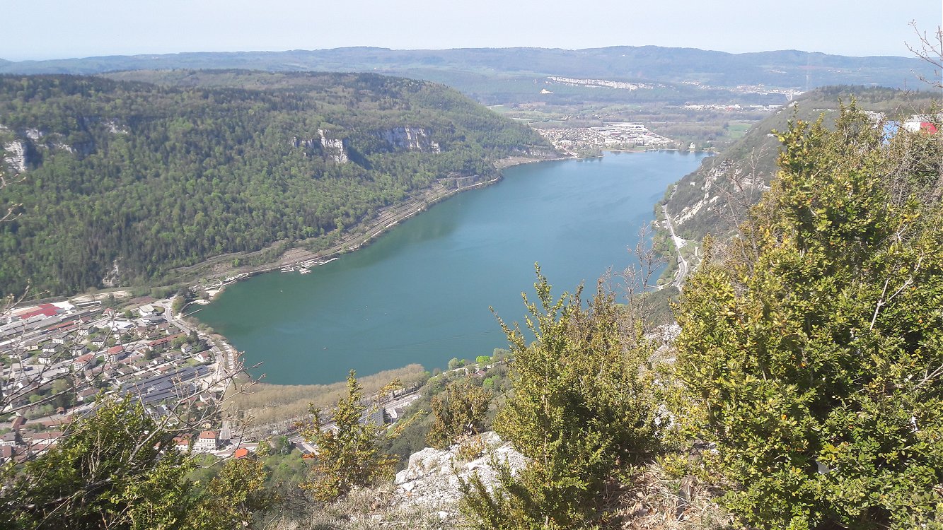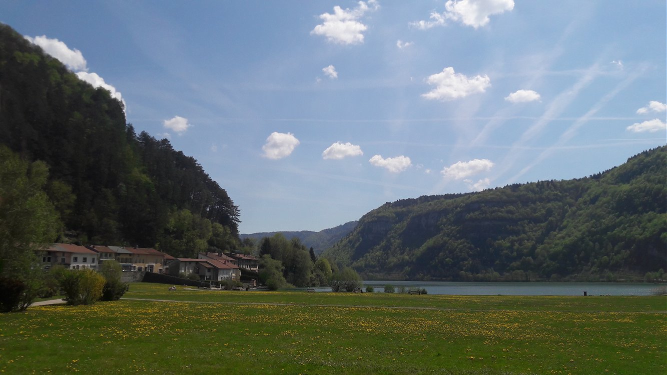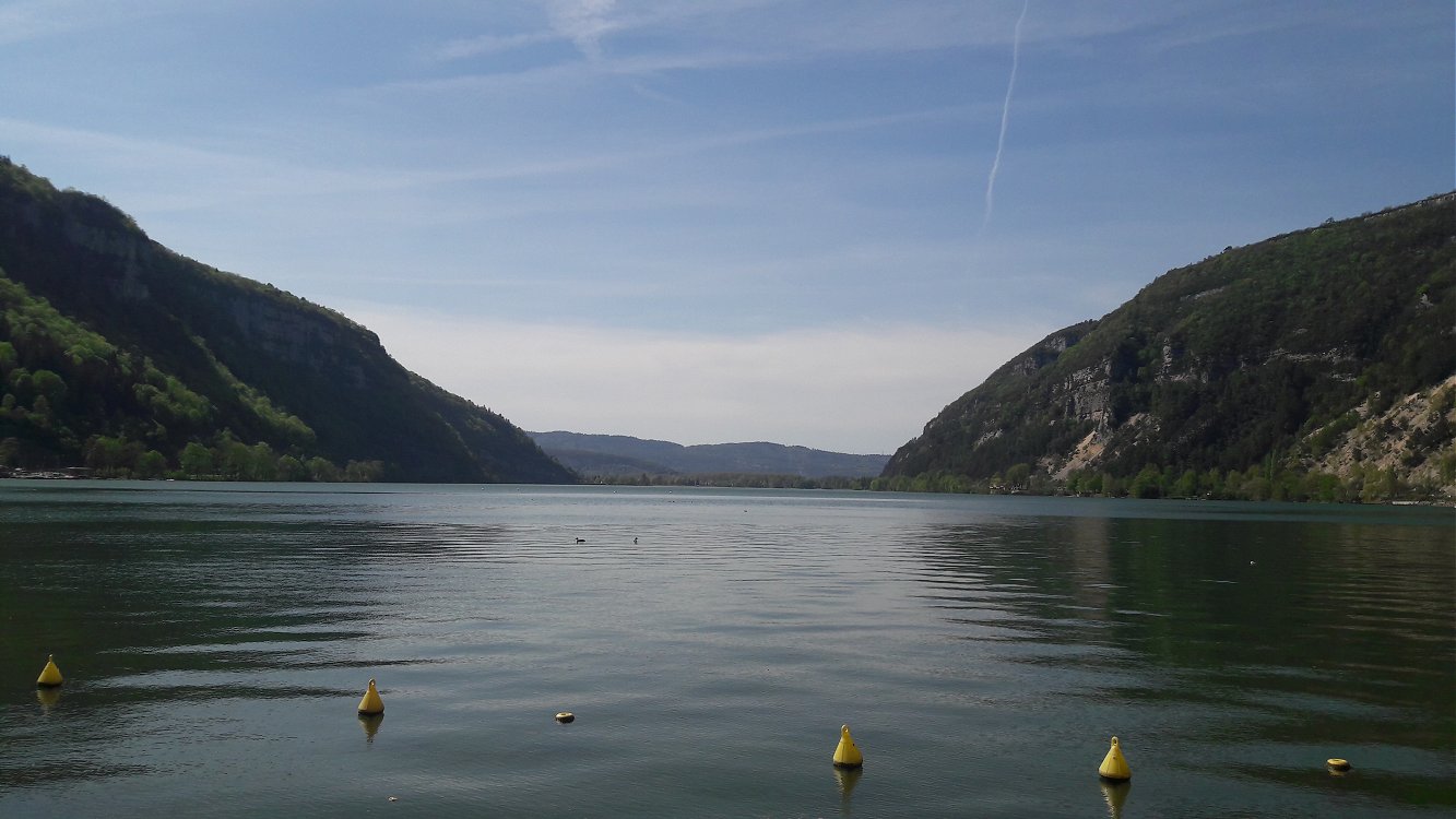 du lac de Nantua brillent au soleil couchant, laissant deviner