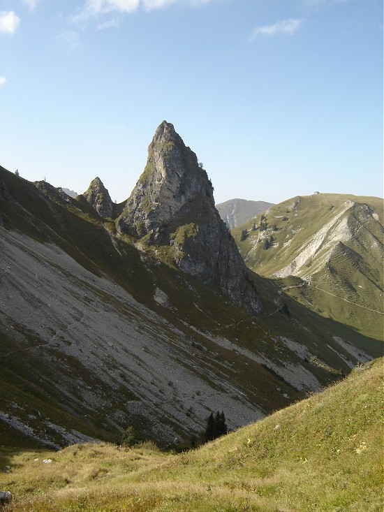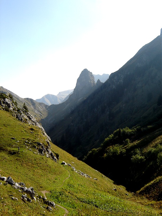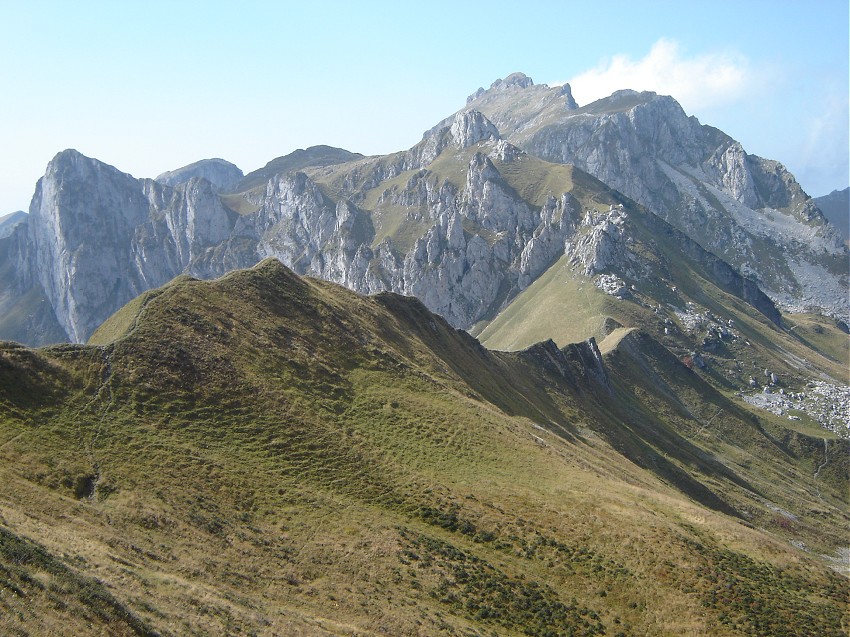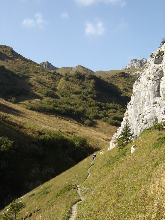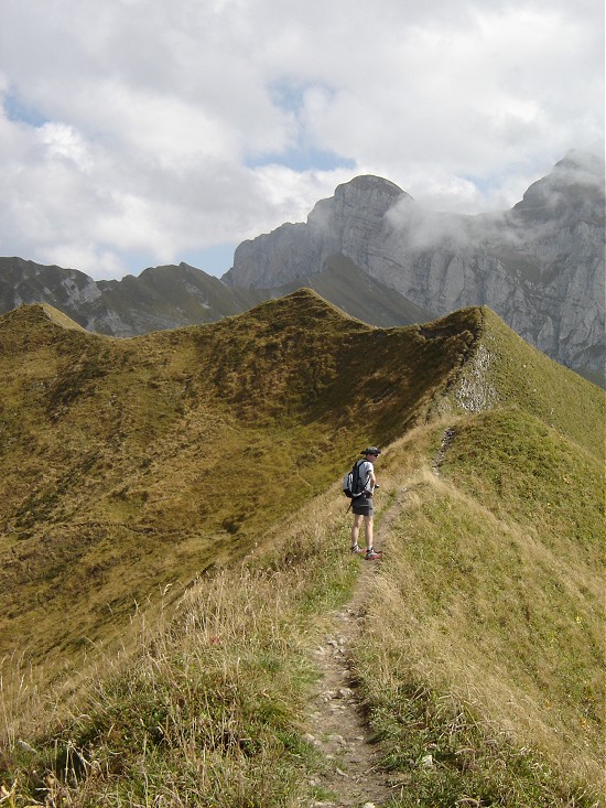 via une petite crête facile, un lieu parfait pour manger