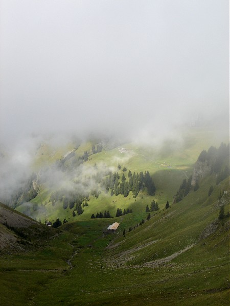 Temps couvert et humide jusqu'au col de Cray, puis vue dégagée