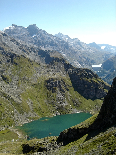 rejoindre le col Termin (2648m). Le lac de Louvie, vert