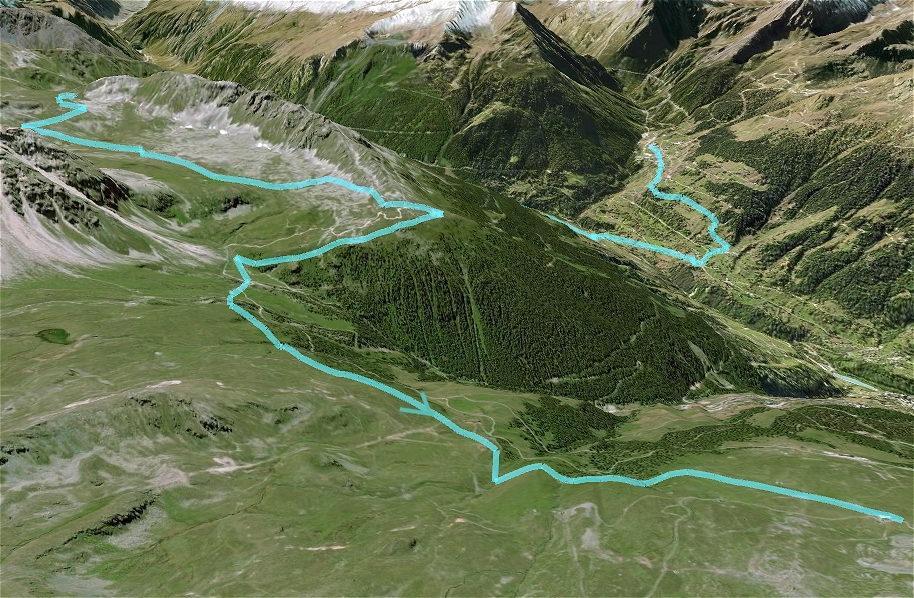 en direction du barrage de la Grande Dixence. Déviation