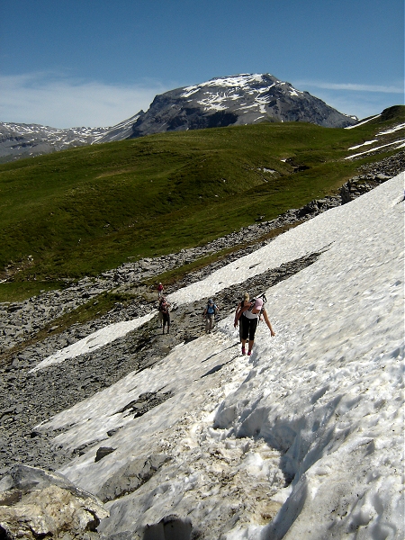 et le massif des Aiguilles Rouges. L'arrivée au col,