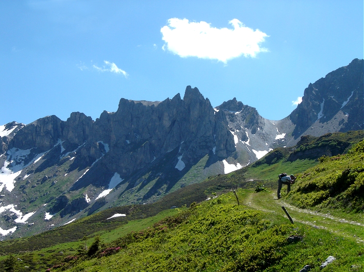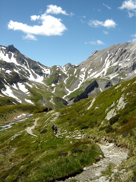 course dans les alpages qui suit l'antique voie romaine qui