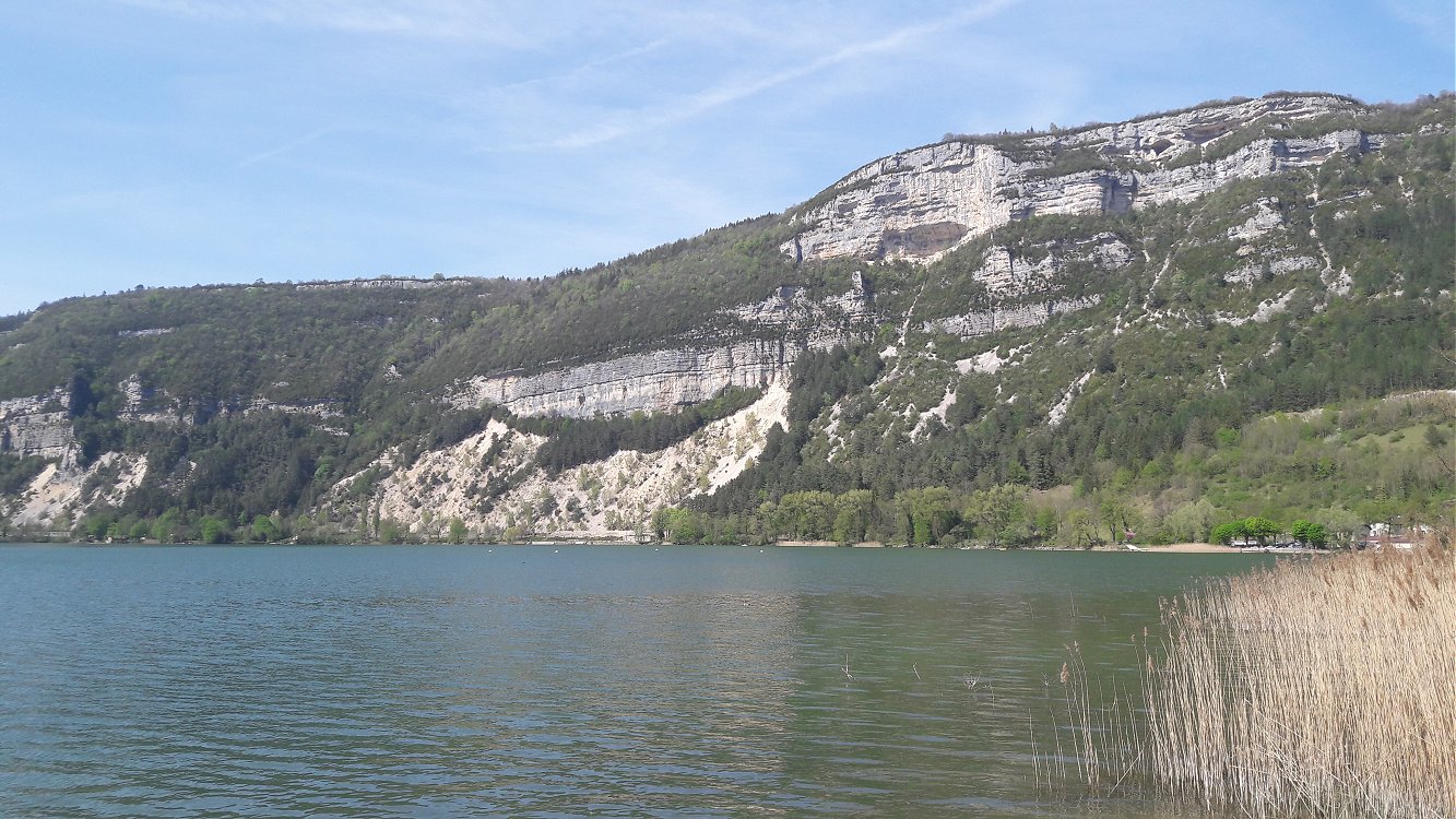 du lac de Nantua brillent au soleil couchant, laissant deviner