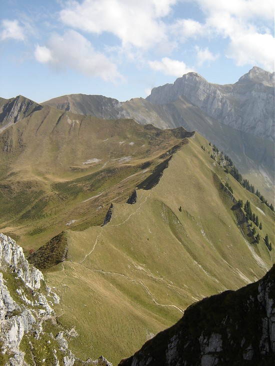 via une petite crête facile, un lieu parfait pour manger