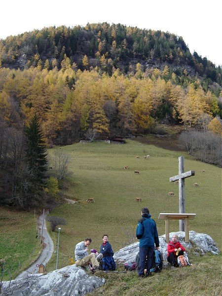 montée au hameau de La Doey. Petite pause avec vue dégagée