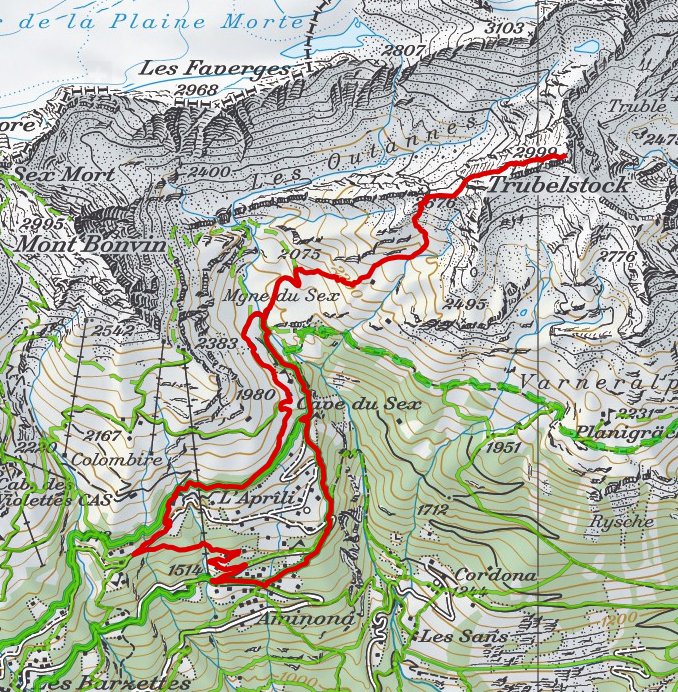 au sud du Wildstrubel, entre Crans-Montana (1495m) et Loèche-les-Bains